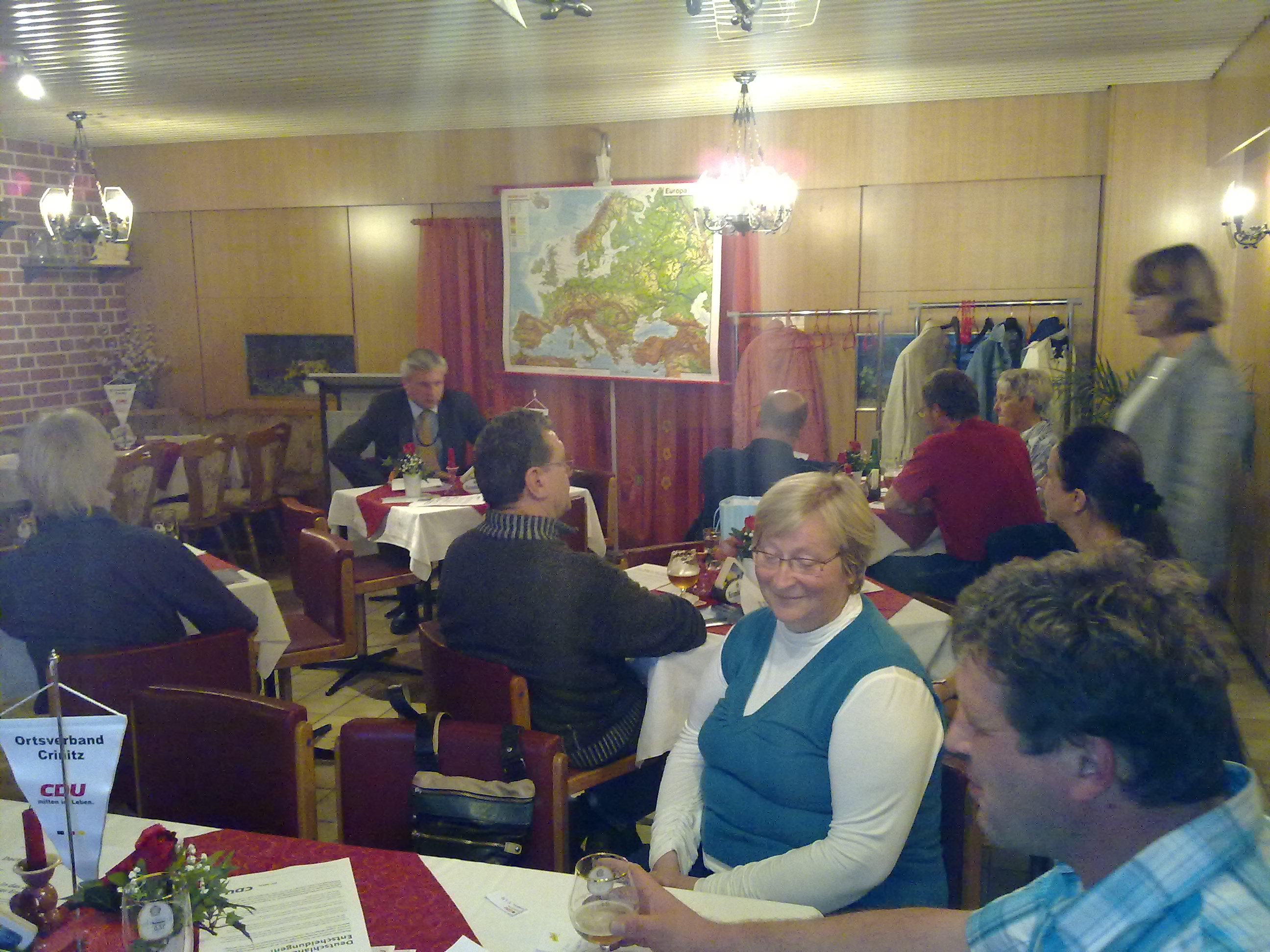 Zum Tag der Detuschen Einheit sprach Knut Abraham auf Einladung der Vorsitzenden der CDU in Crinitz, Claudia Breithor vor Mitgliedern des Ortsverbandes und interessierten Bürgern. Nach einer vor allem persönlich gehaltenen Einleitung kam eine intensive und tiefgehende Diskussion mit den Gästen des Abends zustande, die die Veranstaltung zu einem großen Erfolg werden ließ. Siehe auch unter Aktuelles