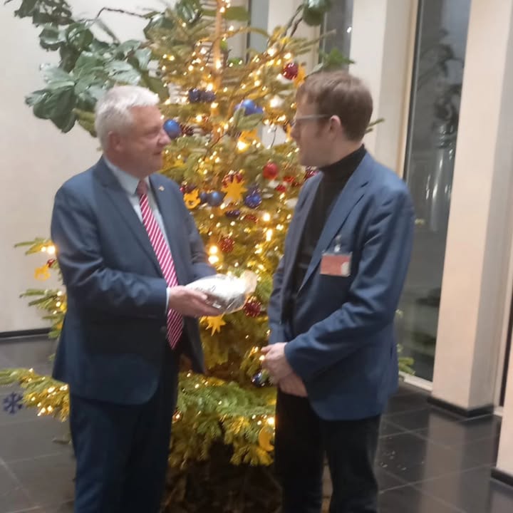 Ein Stollengruss aus Sachsen. Dorfbäckermeister Stefan Richter aus Kubschütz in der Oberlausitz, seines Zeichens Landesobermeister im Landesinnungsverband Saxonia des Bäckerhandwerks Sachsen und Landesvorsitzender der Paneuropa-Union Sachsen und Niederschlesien, überreicht mir einen wunderbaren Mohnstollen. Dafür ganz herzlichen Dank - persönlich und im Namen meines Teams und meiner Familie. #paneuropaunion #niederschlesien #bäckerhandwerk #sachsen